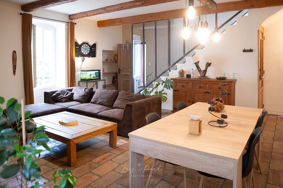 Relax in this quiet and stylish accommodation. Located on the square of this beautiful village of Cazouls d'Hérault, where the river is accessible from the house with nice little walks without taking the car. 50 m from the house there is a park with a boules court and children's games open to all. In the House you will find all the dishes you would need, I leave some products products available: coffee, pods, oil, vinegar, salt, pepper, sugar.