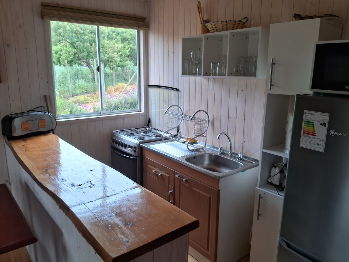 A wooden cabin in a very beautiful place, located on a hill with a great view of the town of Pumanque and the Chilean countryside Prior notice is required to use the sofa bed