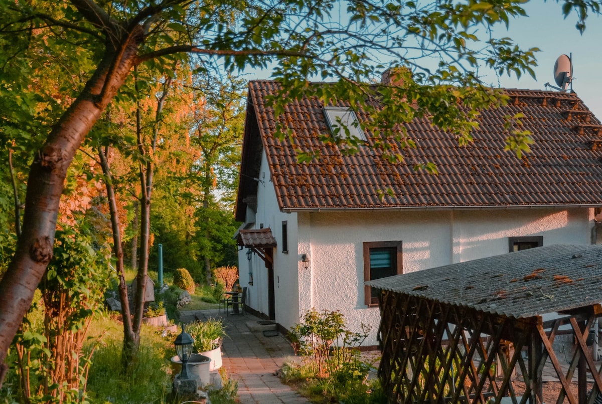 You need time to breathe, hike, write, read, also including family... You need a change of scenery to draw strength and generate new creativity,... You are traveling professionally, want to relax in between and start up the laptop,... - Plenty of space: 145 m² inside, large garden, 25 m² outdoor terrace with panoramic views, ancient linden tree. - Charging station for electric cars - 5 km to the A9, top gastronomy in the climatic health resort, forest swimming pool, mountain biking, hiking directly from the house.