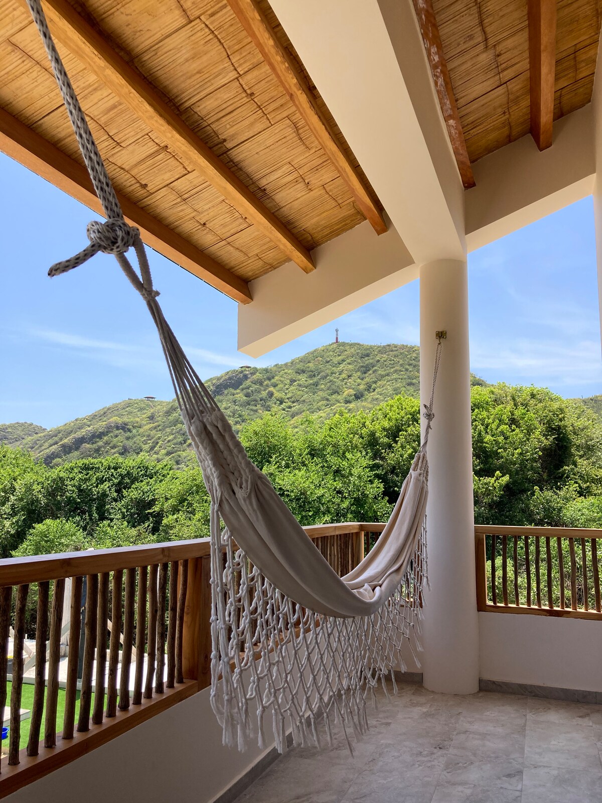 Encantadora y amplia casa vacacional. 6 habitaciones, 3 baños. Ideal para familias, o grupos de 8-12 personas. Wi-Fi de alta velocidad, ideal para teletrabajo o estudios escolares. Balcón trabajado en bambú con espectacular vista al mar. Estamos en la parte alta de un acantilado aproximadamente a 100 metros sobre el nivel del mar. La vista al mar desde el patio es maravillosa, ideal para asados, fogatas, celebraciones al aire libre, o disfrutar del sonido de la olas y la brisa del mar.