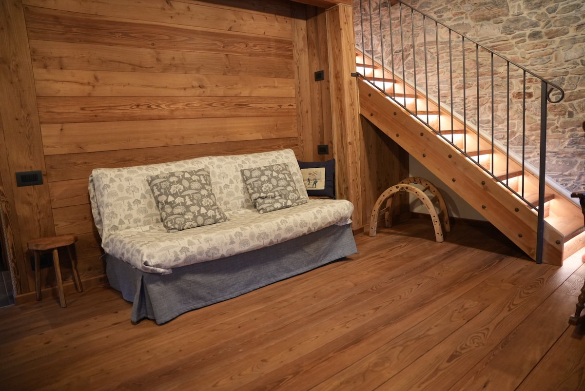 Lou Gingre was designed as a place of peace where you can take refuge when you need to disconnect from your daily routine, where you can breathe in every step the unspoiled and enchanting nature enchanting nature of the Maira Valley. Lou Ginger represents the dream, the ambitious desire of a young couple in love with this valley, to want to transform what remains of a small uninhabited barn, into a "place of the heart” without doors but with large French windows opening onto the woods.