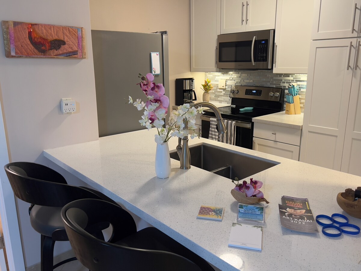 Centrally-located and recently renovated 2 bedroom, 2 bathroom condo minutes from the airport and walking distance to restaurants and bars. With two queen beds and two twin cots your whole family will enjoy watching cruise ships from any of the three lanais. Grab the provided beach chairs and walk over to Kalapaki Beach for some warm sun or hop in the car and head out for an adventure. Located in Lihue, any part of beautiful Kauai is no more than an easy day trip!