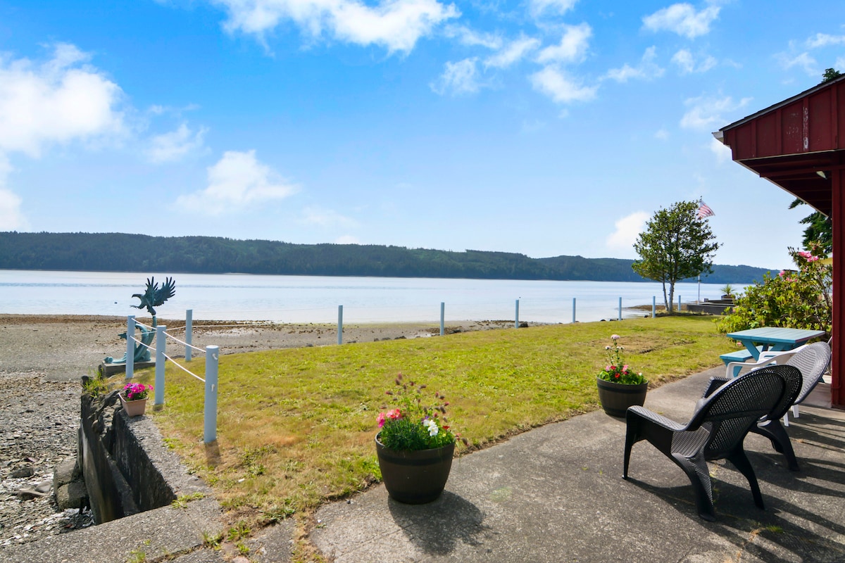 Escape to our private waterfront beach house on the Hood Canal! Enjoy breathtaking water views from every room in this stylish 3-bedroom home that comfortably fits 6. Features direct beach access, a fire pit, kayaks, and fresh oysters on the beach. Perfect for families or groups seeking a serene getaway with easy access to Hoodsport and Olympic National Park. Short walk to town for restaurants, grocery store, wineries, and distilleries.