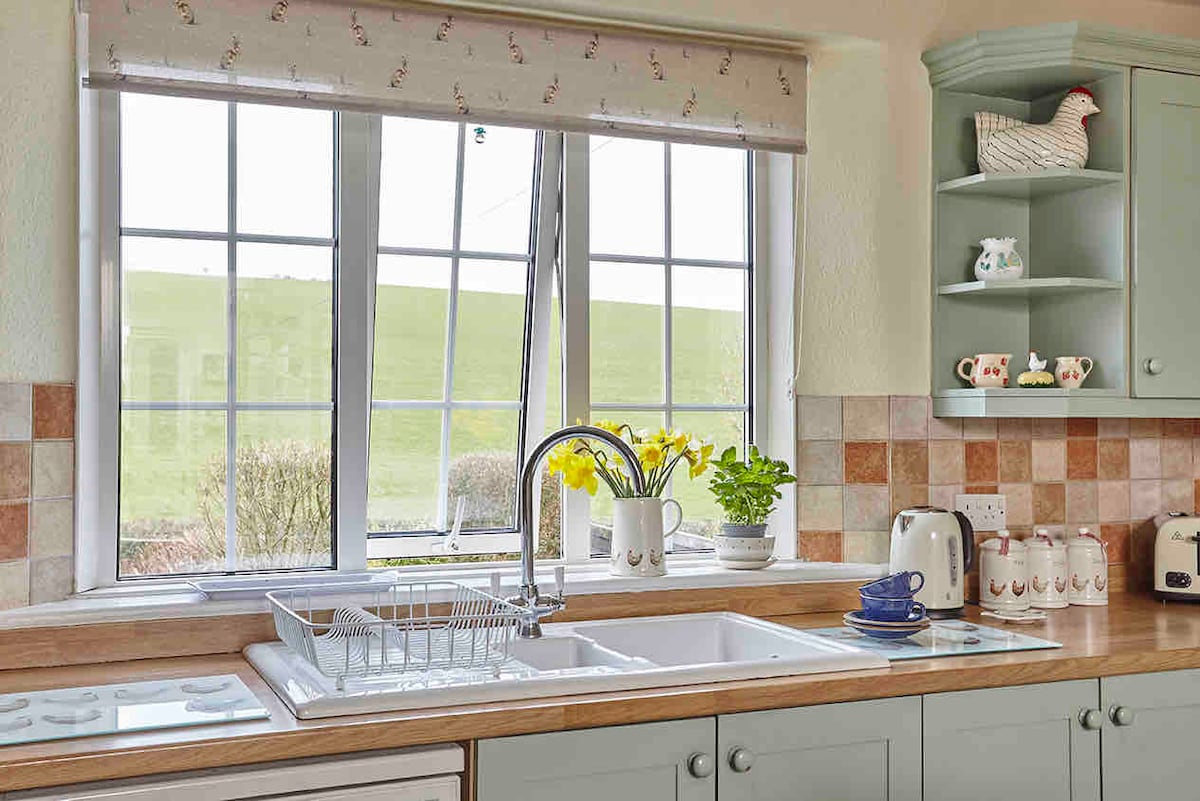 Purbeck View at Chale Bay Farm is an air-conditioned, family-friendly self-catering apartment with views out to the sea. The living area features a contemporary open-plan, fully-equipped kitchen/diner with oven, hob, microwave, fridge, freezer, dishwasher and combined washer/dryer and air-conditioned lounge/sun-room with large TV. Sleeps up to 4 (or 5 with sofa-bed or cot) but you can add more space by booking our stand-alone room Tennyson View or one or more of our other adjacent apartments.