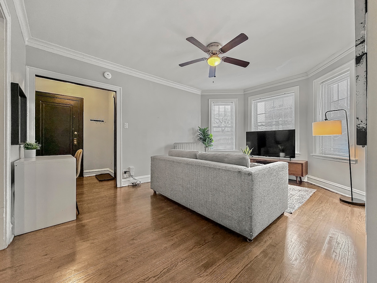 Welcome to your home away from home in the heart of one of Chicago's safest and quietest neighborhoods! This beautifully updated 1 bedroom apartment offers everything you need for a comfortable and convenient stay. It is perfect for couples, solo travelers, and business visitors. Book now for a truly unforgettable experience in the Windy City! - 1 free parking spot - 400 MB Wifi - 2 smart T.V. with access to Netflix, Hulu, Amazon and more! - Desk - Easy app paid laundry in the building.