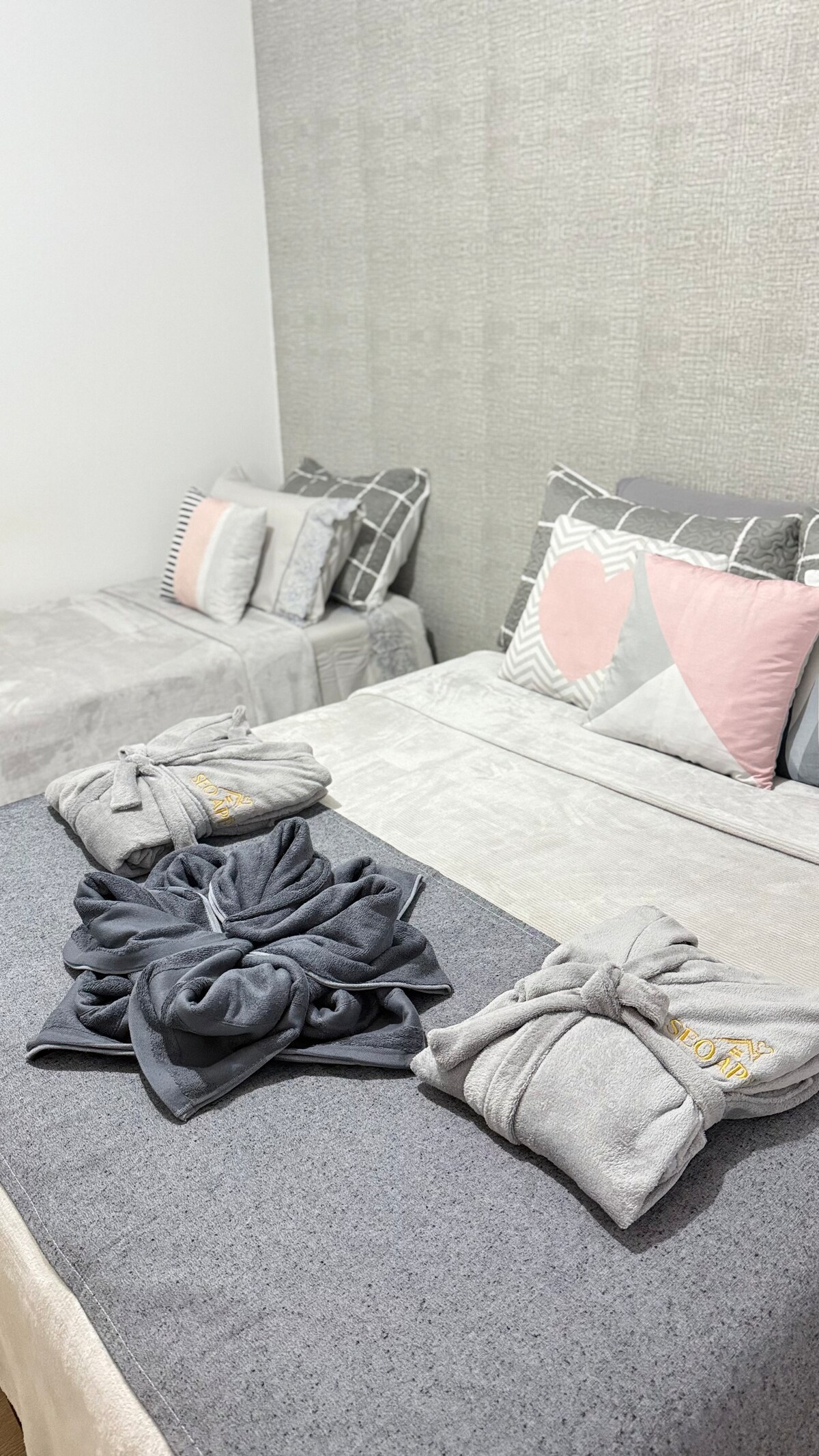 • Apartamento novo, moderno, aconchegante e arejado. Próx de Padarias, restaurantes, etc. • Roupas de cama e banho inclusas • 1 vaga de garagem coberta / prédio com elevador • Wi-Fi Claro 350 Mb • 1 Suíte (Cama Queen) + 1 Quarto (Cama Queen) • 2 banheiros completos • 3 TVs (sala, quarto e suíte) • Cozinha equipada: cooktop de indução, forno elétrico, micro-ondas, air fryer, sanduicheira e cafeteira Dolce Gusto com cápsulas • Itens cortesia: pó de café, filtro, açúcar, sal, azeite e adoçante