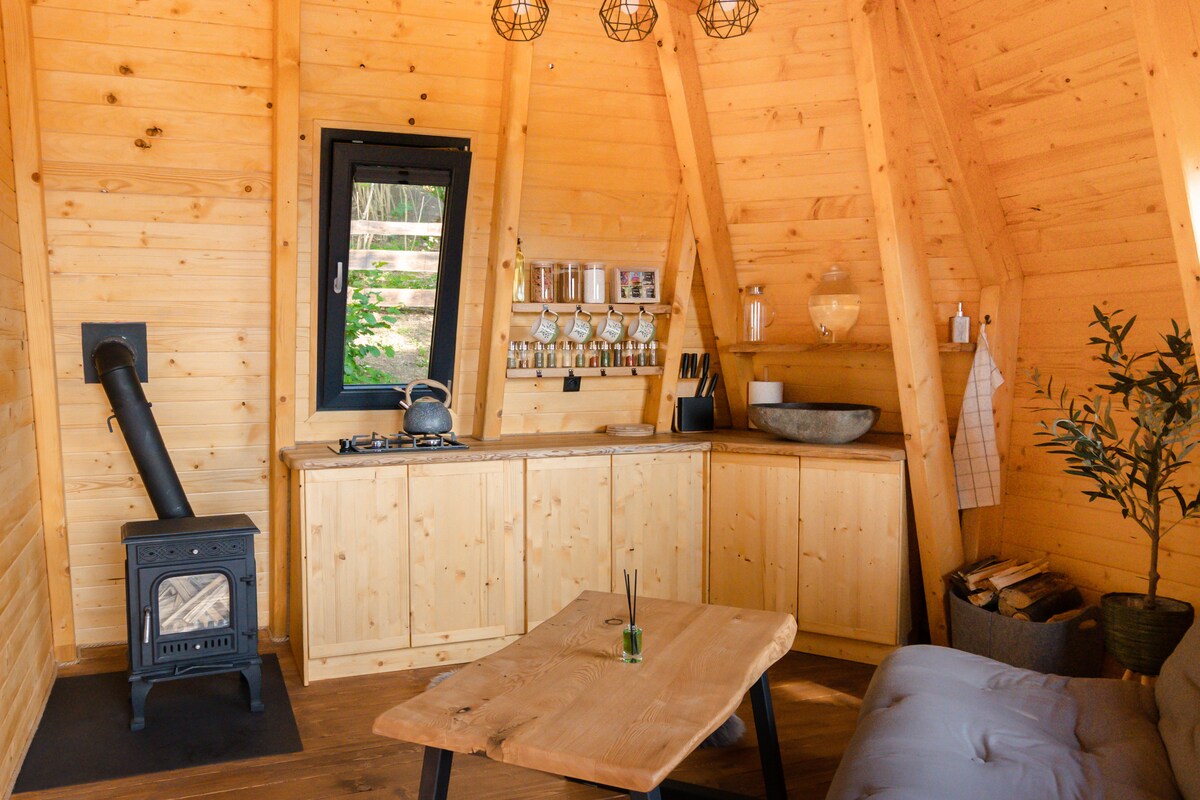 Chalúpka s vlastnou verandou je ideálnym miestom na oddych pre až 4 osoby. Nachádza sa na pokojnej lúke v blízkosti kempingu a ponúka nádherné výhľady na okolitú prírodu, ktoré si zamilujete hneď po príchode. ✨ Novinka od 2/26 ( príplatok 15eur, každý ďalší deň 5eur) k dispozícii vonkajšia KÚPACIA KAĎA umiestnená vedľa chalúpky. Kaďa nie je viditeľná od cesty a poskytne vám maximálne súkromie. PONUKA RAŇAJKOVÉHO KOŠÍKA - iba v nedeľu raňajkový košík 10 eur/ 1os. V prípade detí 6eur/1os.