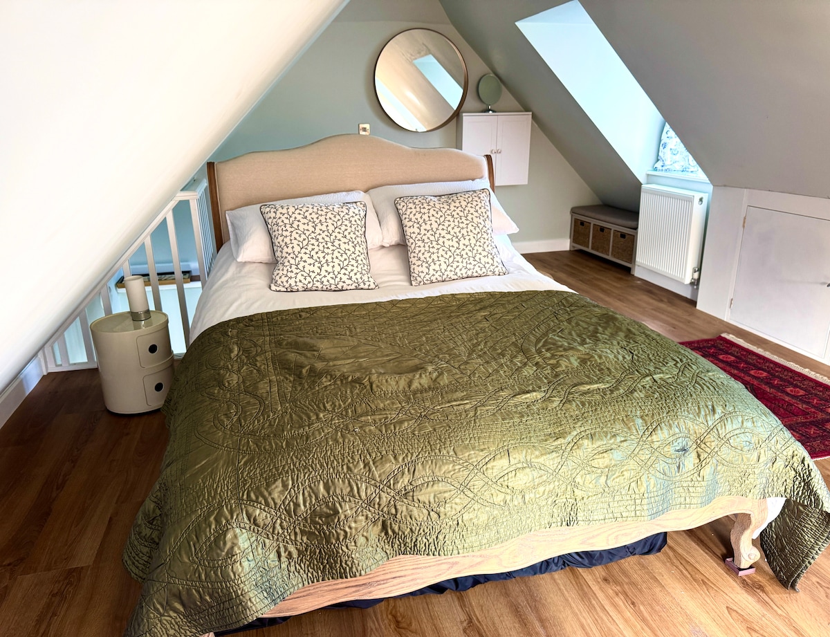 A self-contained, cosy loft studio with everything you need for a relaxed stay and stunning views to the South Downs. Fast Satellite Wifi, parking, deck area plus garden space with barbecue and seating. Shower room, kitchen area with microwave, coffee machine, fridge, air fryer, bike store. Beautiful scenic walks, cycle routes. Near to Liphook, Haslemere, Milland, Goodwood, Midhurst, Cowdray, West Wittering beach. Rural yet 3 mins by car from station, shops and a great pub. It’s a lovely place.