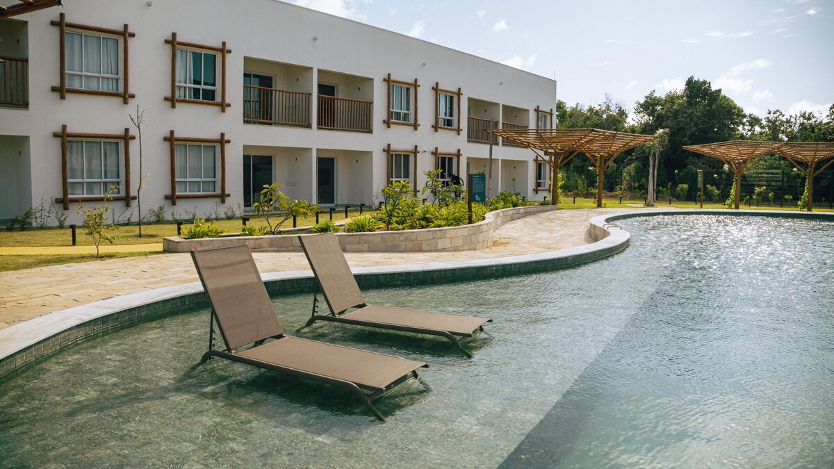 Île de Pipa MGallery is a boutique hotel with a contemporary and original design, located in Tibau do Sul, on Pipa Beach (downtown - you can do everything by foot). Our IG profile is @azul.aluguel or @home_aluguel Room 107A is spacious, comfortable and has a restricted wet deck. The leisure and wellness facilities to relax, such as the gym, swimming pool, poolside bar, wet sauna and spa, are ideal for enjoying an unforgettable luxury trip!
