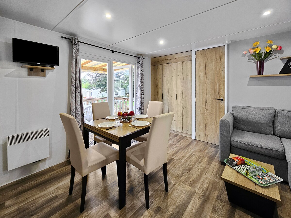 A rare experience! Welcome to Les Hérons Bleus, a spacious Beachcomber mobile home, very well equipped and with a warm atmosphere, ideally located on a spot by the water, both quiet and close to the facilities and playgrounds of the 4-star SIBLU campsite. With its large covered terrace for relaxing and dining, it's the perfect place for a family vacation. Beds made on arrival & towels provided for a stress-free stay! Private parking.