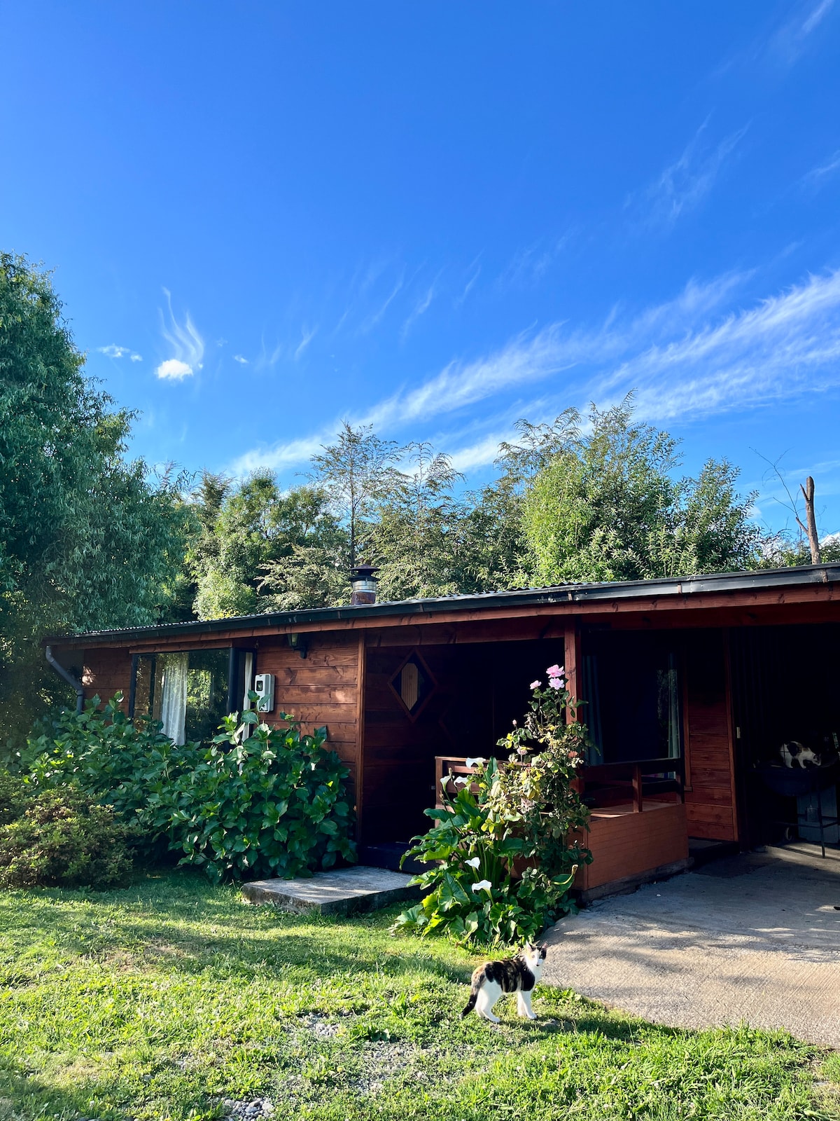 Beautiful Cabin in the Forest, located in the Lefún area between Villarrica and Pucón. It offers a stunning view of Villarrica Volcano, surrounded by native forest and birds. Every day you can hear Loicas and Chucaos. Fully equipped so you can enjoy your stay, disconnect, and relax. A lovely stream runs through the property. We recommend taking nighttime photos of Villarrica Volcano next to the wood stove with the panoramic view our cabin offers. We are sure you will love it!