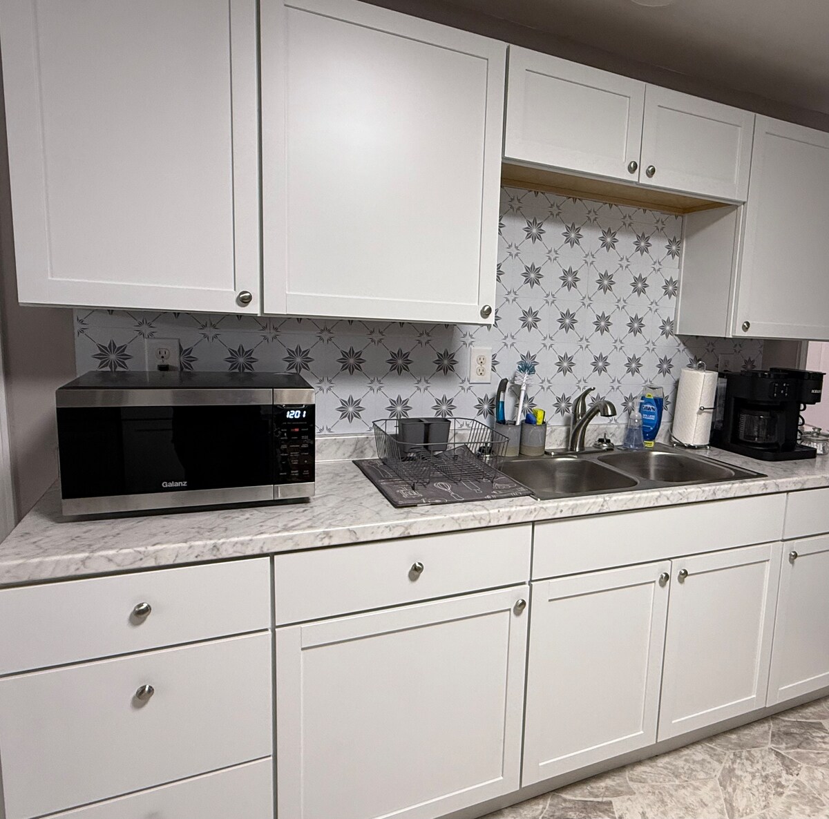Spacious home sleeps up to 8. The master suite features a king bed, twin trundle, air mattress, 55” TV with soundbar, updated shower, soaking tub, and walk-in closet. Two additional bedrooms offer queen beds. Enjoy central air/heat, washer/dryer, smart lock, smoke alarms, and fire extinguisher. The kitchen includes a Keurig coffee maker for your stay.