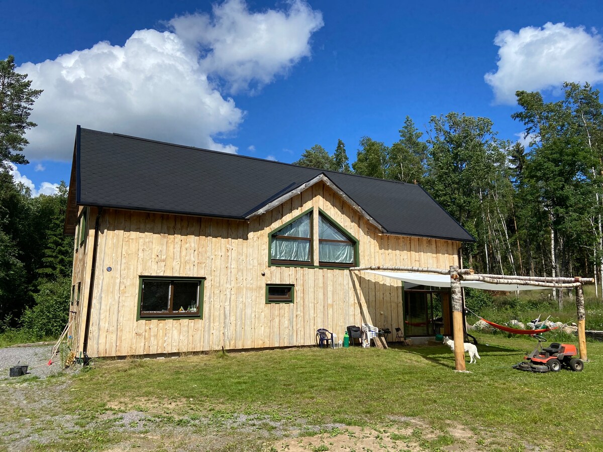 Relax in this waterfront cabin on your own private peninsula in the beautiful Dalarna region. Enjoy the 200° water views and spend the days swimming or fishing from the private jetty with 2 kayaks available for use. Pick berries or mushrooms in the nearby forest or walk on beautiful trails. Cuddle up next to the fireplace and enjoy the sunset before bed. In the winter, experience the white landscape, walk or ski on the frozen lake. Alpine or cross-country skiing in close driving proximity.