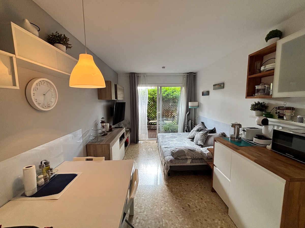 Hosted by a 10-time Superhost with consistently 5★ guest experiences. This spacious studio apartment is located in a very quiet residential area of Begur, just a 20-minute walk from the town centre. The studio features a fully equipped kitchen and a spacious bathroom with a large shower, WC and washbasin. The sleeping area includes a double bed with direct access to a private chill-out lounge area. There is also an indoor lounge with a comfortable sofa, two coffee tables and soft lighting.