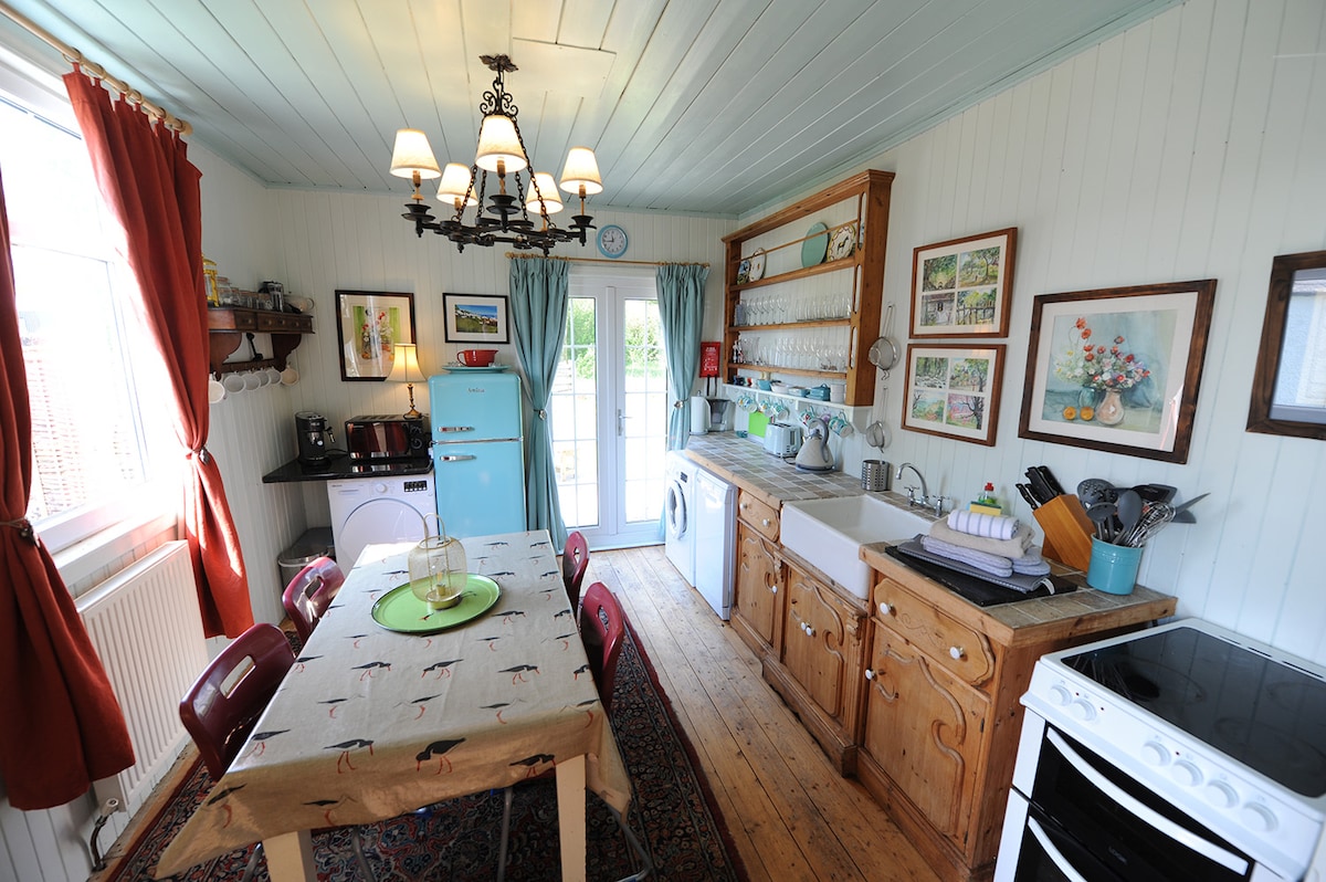 Our chalet is in our large, well managed garden. While it is near our house and we are happy to chat, we always respect peoples privacy. This is a very peaceful place where you can sit outside and watch the flames of the fire pit at night or stay in and have a cosy evening. Our neighbours are all of the four legged variety so some countryside noises are to be expected but the cows love to come and greet you at the wall. Parking space in garden