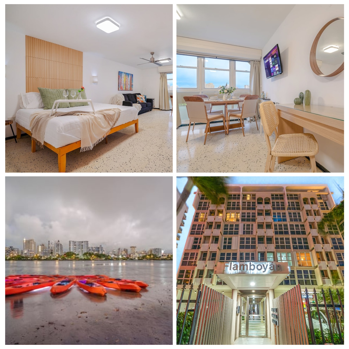 Casa Laguna is a one-of-a-kind experience featuring views of the Condado Lagoon. A 10-minute ride from the airport will have you enjoying magical sunsets, while relaxing in our sanctuary. Enjoy having direct access to the lagoon and a cute beach, with beautiful views, located right across the street, next to the Condado Plaza Hotel. You will also enjoy a private entrance to the building with security guards at night and a first-come-first-serve parking lot. No assigned parking spot is available.