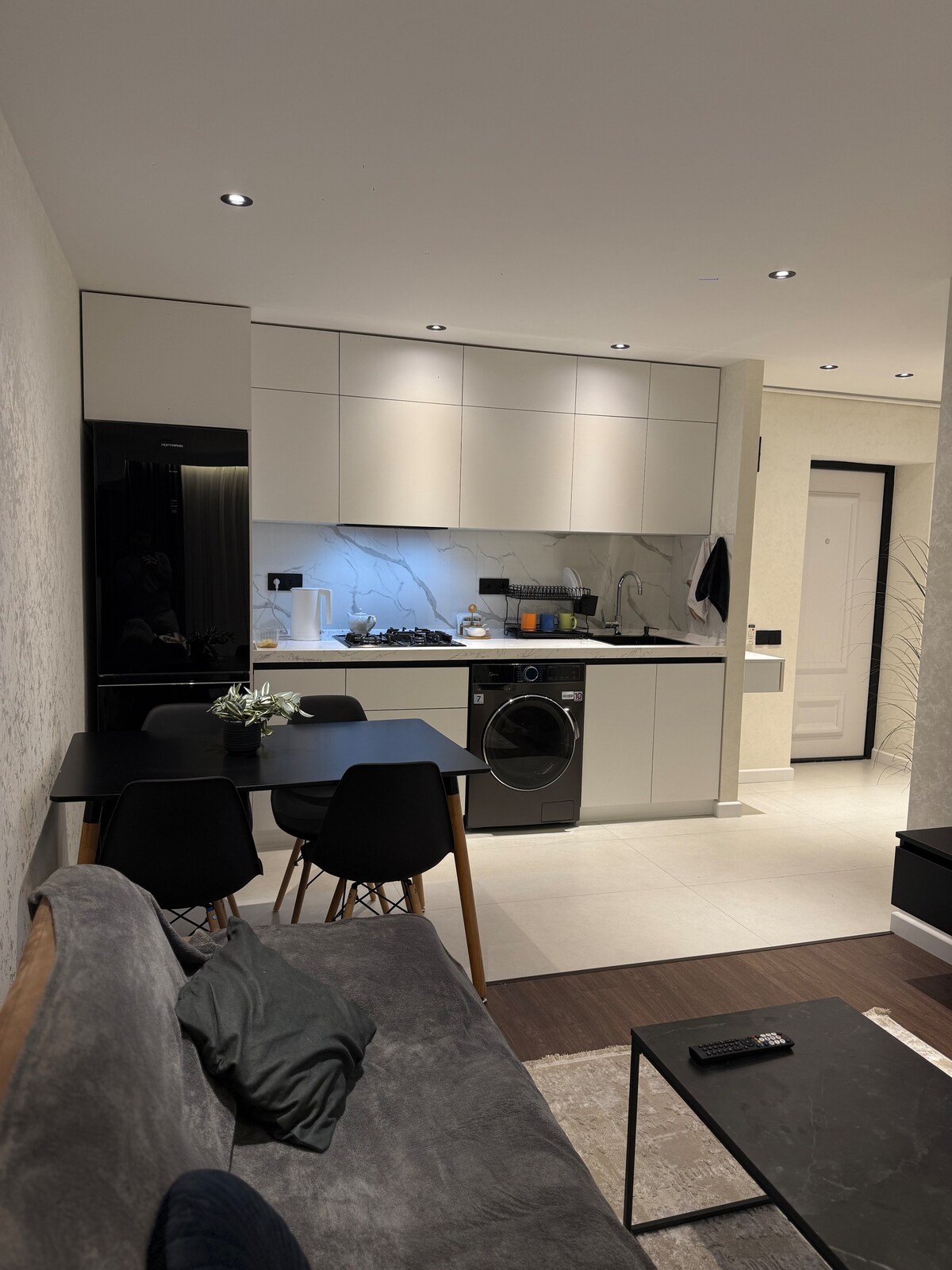 An elite apartment by the sea in a prestigious area of Baku. Enjoy a beautiful view from the balcony or relax in the cozy living room. There are many restaurants, cafes, shops and entertainment near the house. The apartment is equipped with everything you need for a comfortable stay: a comfortable bed, a sofa bed, a TV, air conditioning, a kitchen with all the necessary utensils and appliances, a bathroom with a shower and a washing machine. Free Wi-Fi is available in the apartment, allowing you to stay connected and work remotely.