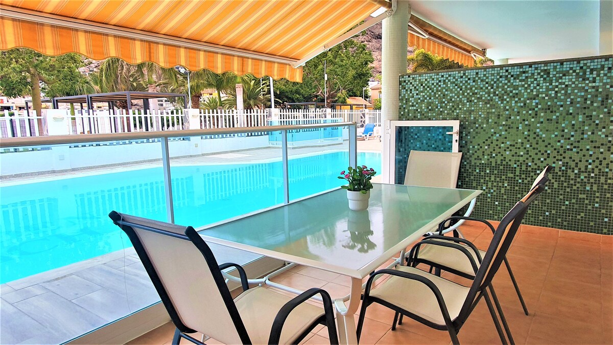 In front of the "Little Venice of Gran Canaria", a short walk from Mogán Beach and the Port combined with gentle breezes and lots of sun...all year round! CLEANLINESS: 10 points AMENITIES: 10 points LOCATION: 10 points Spectacular views from the balcony and terrace. Very close to picturesque restaurants, bars and shops. Apartment with terrace and balcony, private bathroom, air conditioning, flat screen TV, wifi, living room with sofa bed, fully equipped kitchen.
