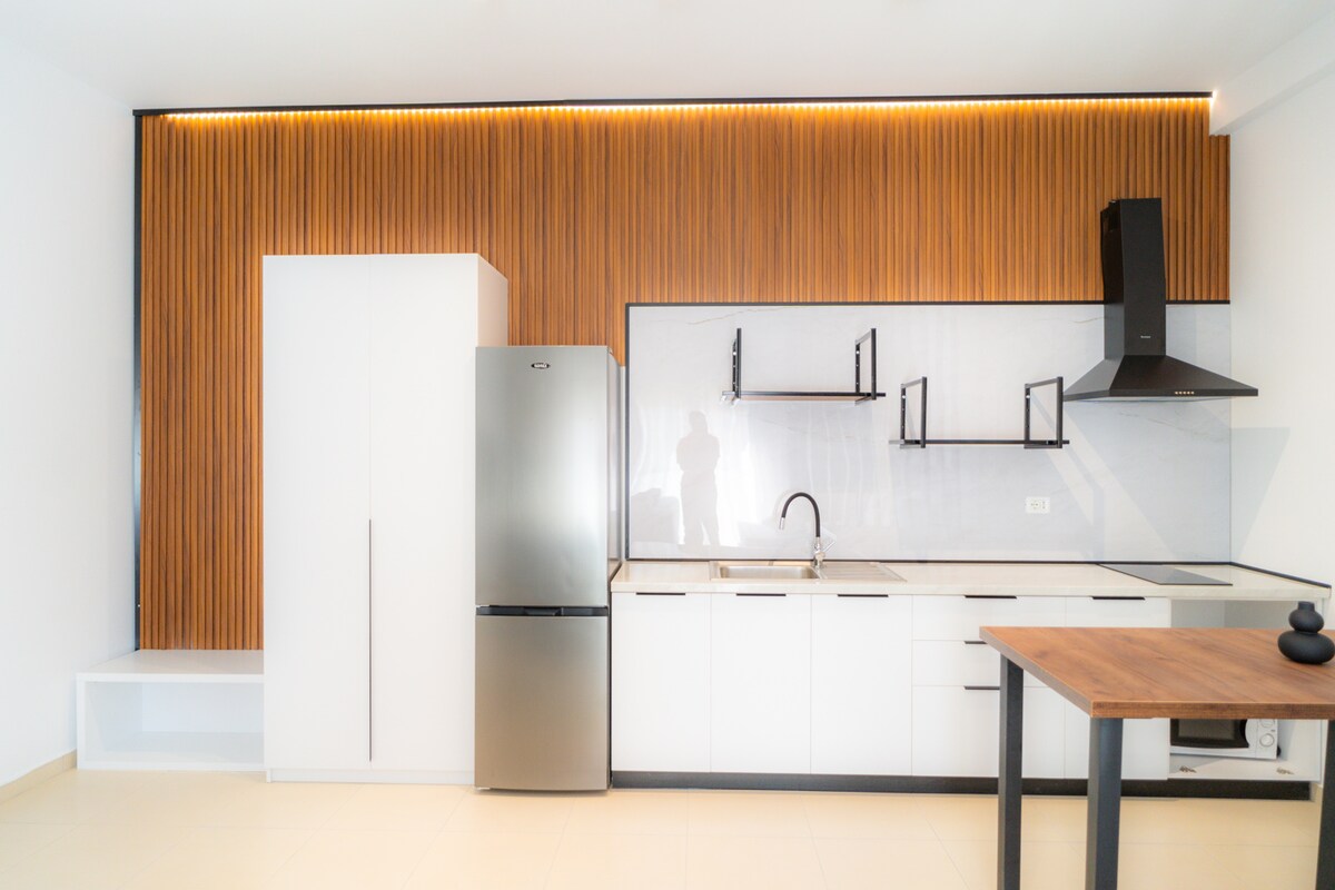 New comfortable apartment, in a quiet part of the city, surrounded by greenery. The apartment is 400 meters from the city center and 1000 meters from the beach. The apartment can accommodate 4 adults and is equipped with quality furniture that provides maximum comfort and convenience. An underground garage with its own parking space is also provided for parking your car. When furnishing the apartment, maximum attention was paid to all the details and all the details that may be needed for a family were provided.