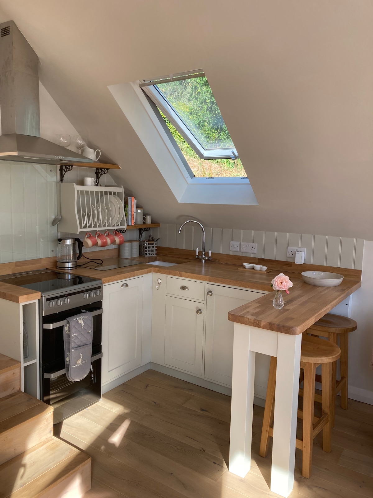 In the centre of beautiful Minchinhampton, this detached cosy cottage is open plan in design and tastefully renovated throughout with plenty of modern conveniences. Set in our quiet pretty garden, and with on-site parking + Type 2 EV charger, a perfect getaway. The space is safe for a couple, equipped for living, and it is easy to remain quite isolated from the busy world. As hosts, we are right next door for queries and information. Please read our reviews to see why people book.