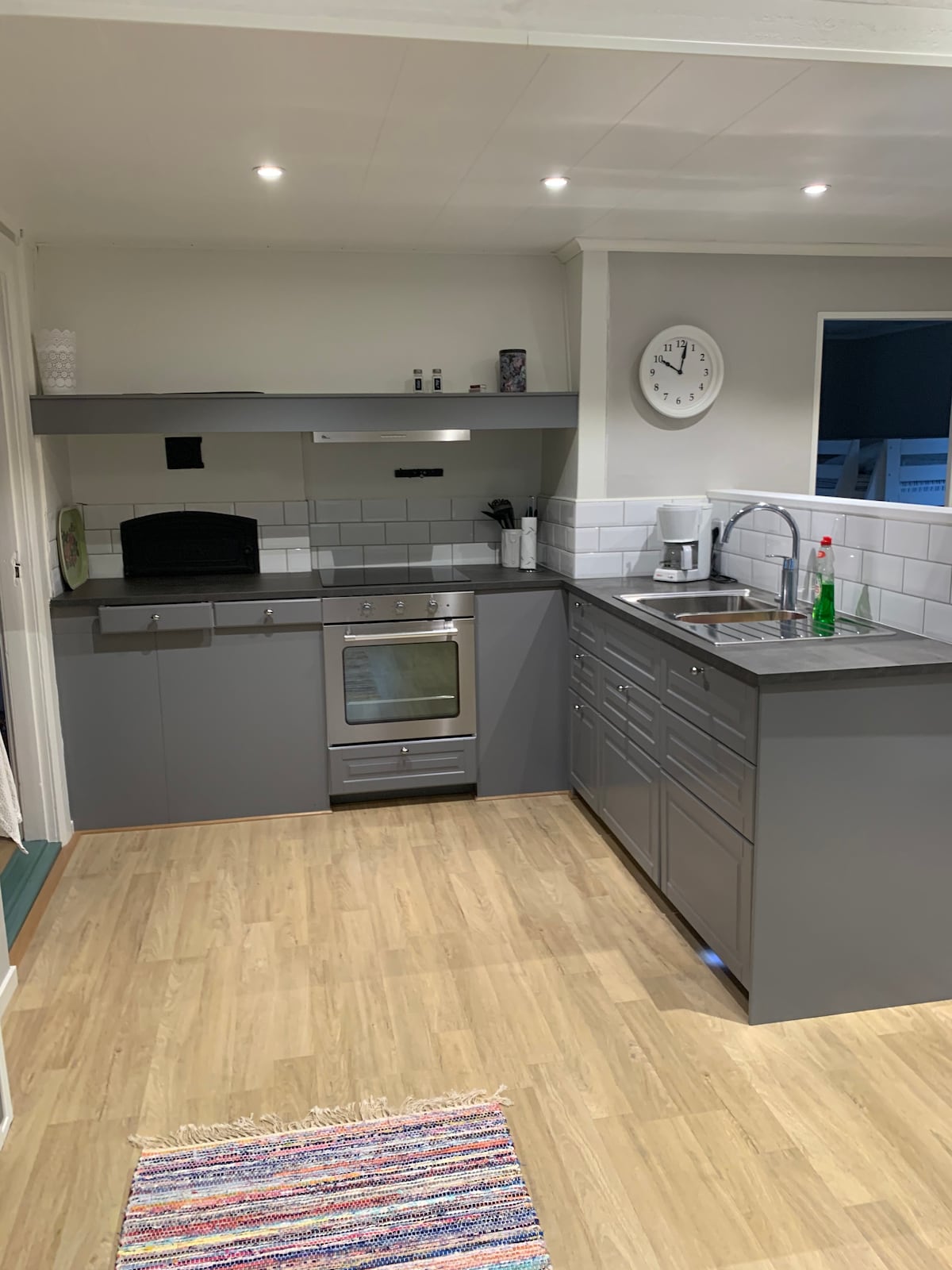 Here you live very well in a newly-renovated cottage in an amazing setting! The cottage is newly renovated and partly newly built, there is a modern kitchen that is equipped with most of what is needed. New and fresh bathroom with washing machine. Sleeping loft with double bed and one bedroom with bunk bed that sleeps two adults or two adults and one child. Living room with fireplace and TV, there is also a daybed where two people can sleep. Sunny terrace facing south with exit from the kitchen where you can enjoy the sun.
