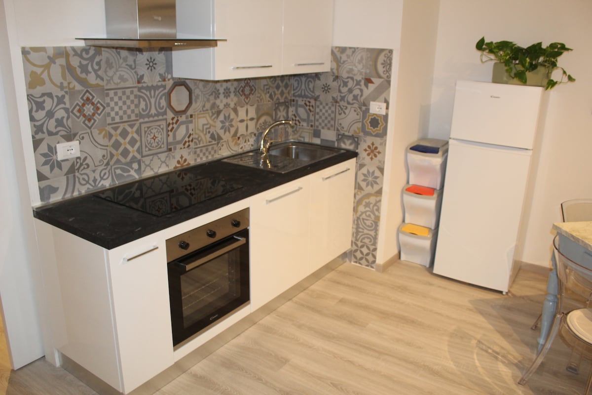 Two-room apartment with view of the Sanctuary reachable on foot in 5 minutes.Theapartment is equipped with air conditioning in both rooms, wifi internet, induction hob, oven and microwave,dishwasher, TV, washer-dryer. It is located in the area with all the services present; in the same building there is a supermarket and a pharmacy, in the neighborhood tobacco shop, pizzeria bar,fishmonger, laundry and bank branch with ATM. Free parking.