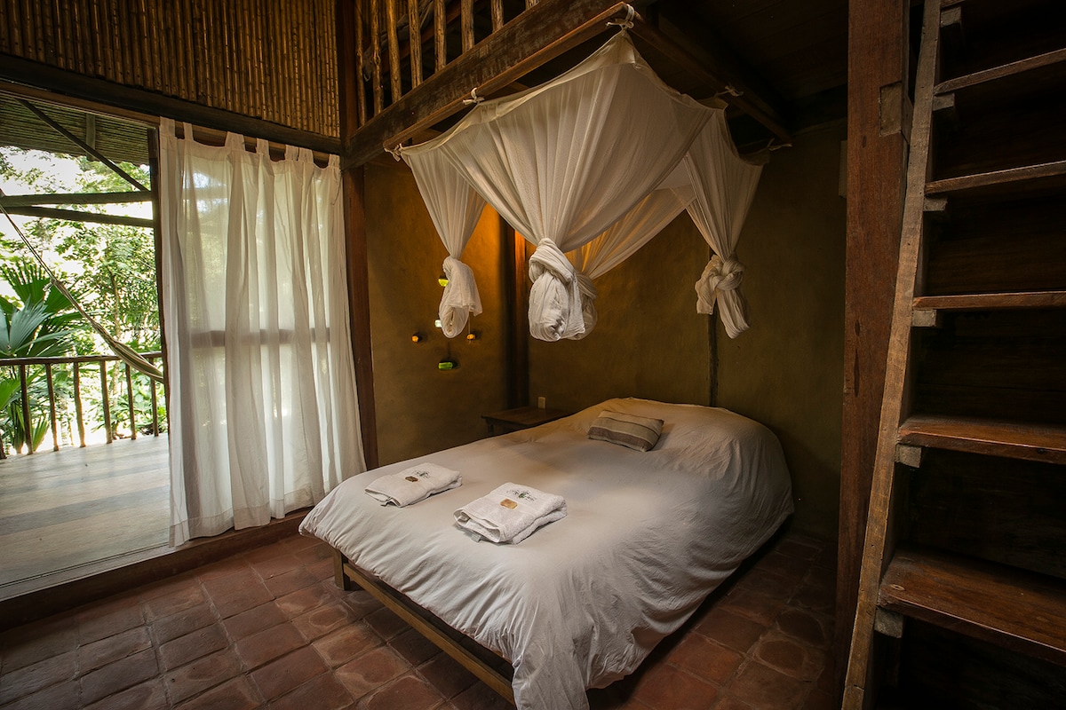 Yacu Manta Couples or Double/ 1rst floor Room with one double-bed and one single bed in loft; private bathroom, exit to terrace and river view. The “couple” option considers the use of the double-bed and the “double”, the use of both beds. Available for couples with children under 5 years old, at no additional cost.