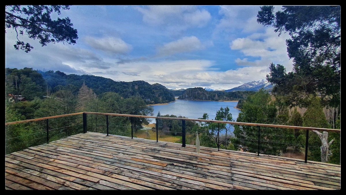 Our magnificent private cabin complex is surrounded by nature, overlooking the lake, hills, and surrounded by native Patagonian trees. Ideal for those seeking tranquility and comfort. We have direct access to the lake, with a mooring buoy for those who need it, a heated pool, and a children's play area Excellent location, 20 minutes from the civic center, 25 minutes from the Catedral international ski hill and 40 minutes from Bariloche international airport.