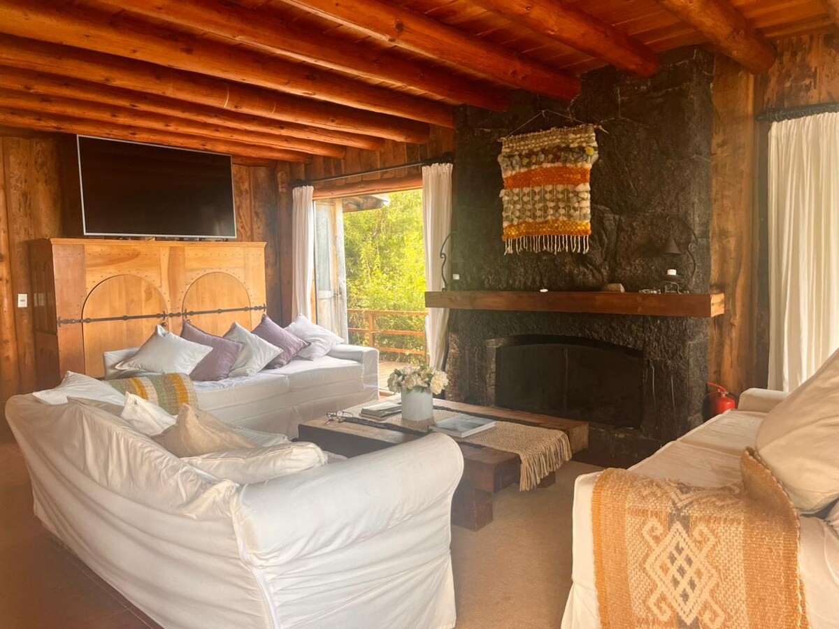 Enjoy a unique and relaxing experience in this cozy alpine house surrounded by native forest, ideal for families or couples seeking tranquility, nature, and comfort. Unwind in the private hot tub beneath the trees, disconnect from the noise, and experience Pucón from a warm and exclusive setting, just minutes from the city center.
