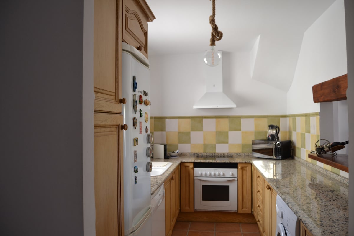 This spacious one bed-roomed apartment has been created from an annexe of an old cortijo.Fully furnished with private entrance and off road parking..The kitchen is well equipped with all you need and even for picnics ! There are 2 private areas to the rear to sit and have a coffee or a bite to eat. From the private parking to the access of the whole apartment it is all on one level In the colder months there is a goose down duvet and electric blankets,aircon heating and a gas fire.