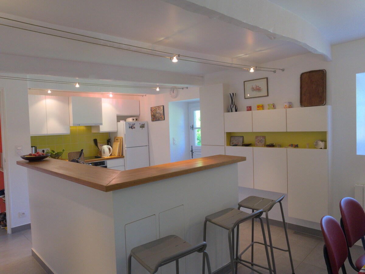 Charming studio with mezzanine, located in the heart of the city of painters made famous by Paul Gauguin and the painting school of Pont-Aven. The studio is located in a wing of our house and you have two entrances to access it. You have an outside dining area at the foot of the staircase and a terrace with garden furniture and deckchairs. The garden and terrace can be lit in the evening. You are 200 meters from the city center and the museum and very close to the port.