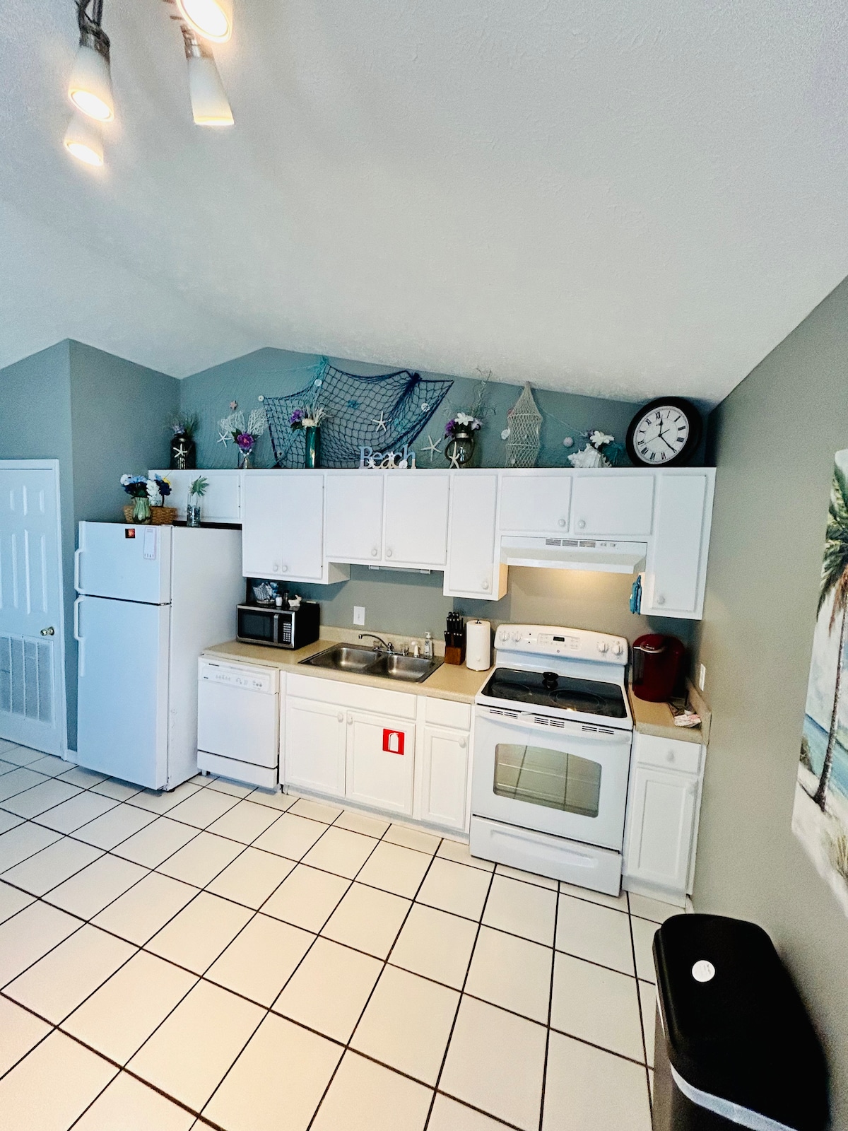 Nestled in the heart of Thomas Drive, minutes from Schooners (#1 beach location with a cannon blast sunset celebration every evening) marinas, state park and of course the beach is just a brief walk (about 90 yards)right across the street with crosswalk. Private backyard with grill and outdoor tiki hut shower. Three full showers and beach shower out front. TV’s all rooms (streaming only), internet “A short time change in latitudes can help improve your attitudes “