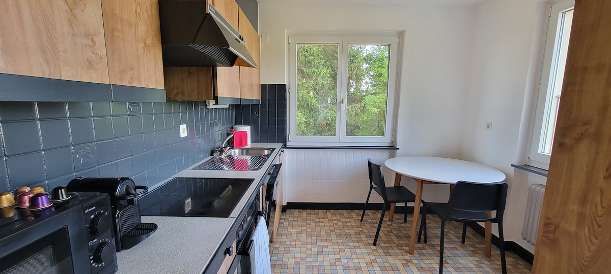 Au Creux de l'Areuse, themed apartment: Industrial ✈️ Travel 🖤🧳 Climb aboard and let this home surprise you in its unique world. A perfect place to rest close to many activities in the Val-de-Travers region🌳🏘: 50 m from beautiful hikes ⛰🗺 700 m from the train station 🚉 1 km from the via ferrata 🧗🏼♂️ 2 km from Asphalt Mines ⛑🔦 3 km from the absinthe distillery 🍾🥂 5 km from Gorges de l'Areuse 🏞 7 km from Creux du Van 📸🇨🇭 23 km from the city of Neuchâtel🏢🌃
