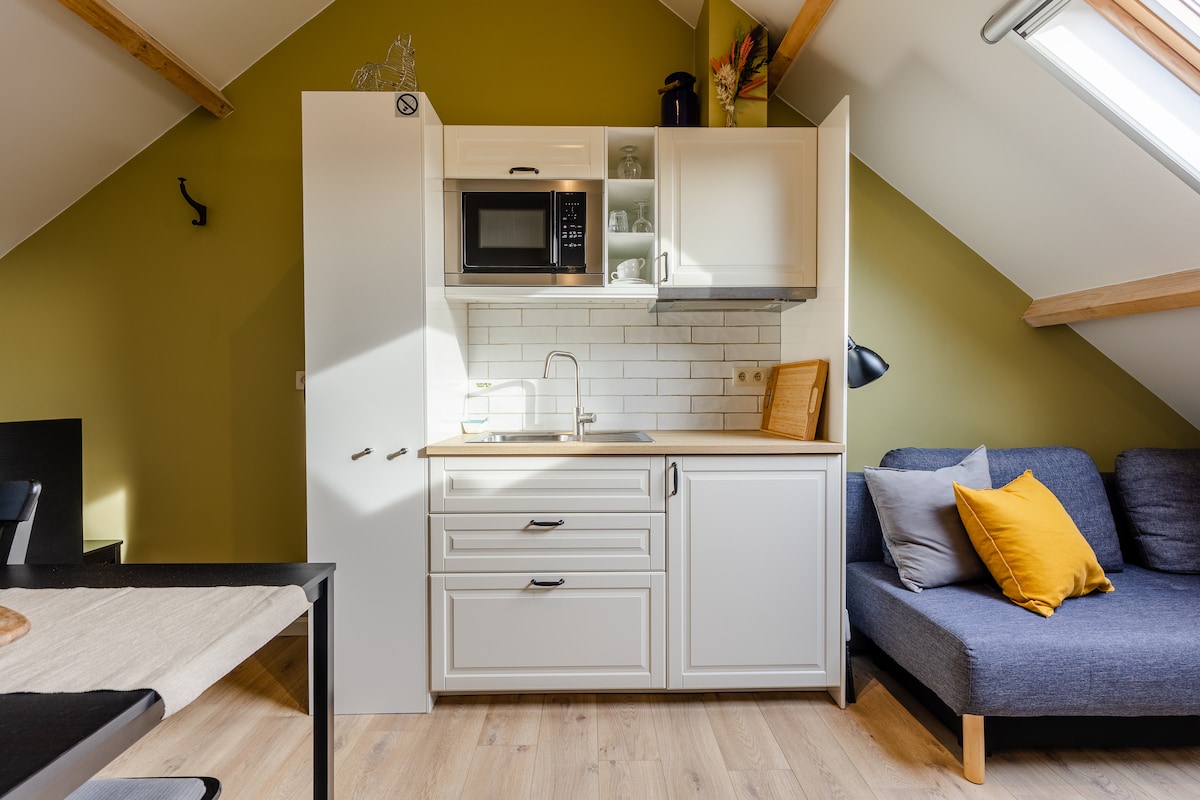 Escape to our romantic suite and enjoy a unique experience under a starry sky. Relax in a round whirlpool bath with wide edges and soothing hydrojets, or under a spacious rain shower. Warm up your evenings with a panoramic pellet stove — perfect for creating a cosy and intimate atmosphere. Everything is designed to help you disconnect from the everyday and reconnect with each other.