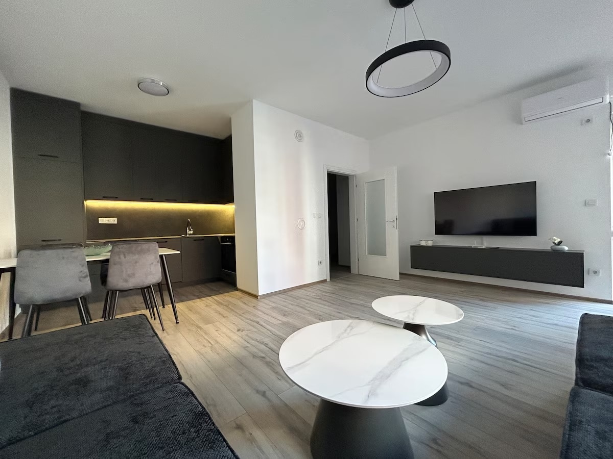Mon appartement, "In the heart of Prizren II", est un logement moderne de 101m² avec deux chambres, pouvant accueillir confortablement jusqu’à 5 personnes. Ses pièces lumineuses, son wifi rapide et sa cuisine entièrement équipée en font un lieu idéal pour un séjour en famille ou entre amis. Il est situé à seulement 5 minutes de la vieille ville (Shadervan) et des centres commerciaux (GALERIA SHOPPING et ABI Çarshia).
