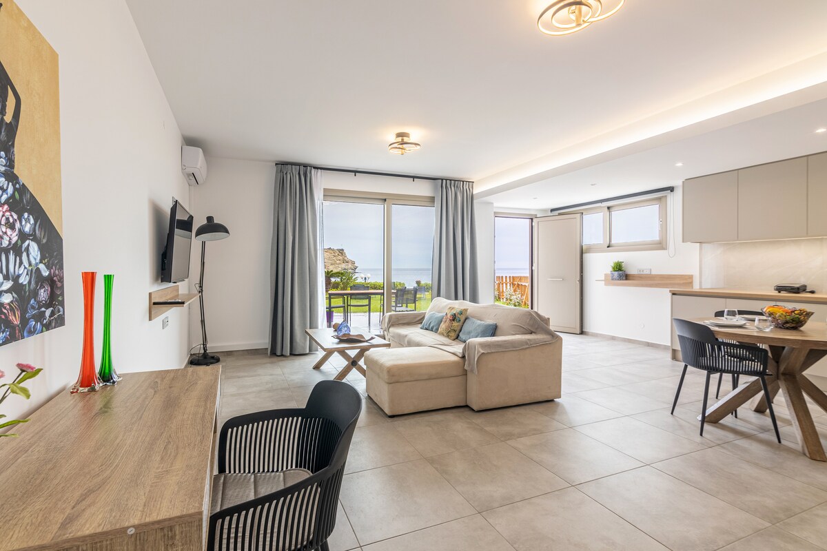Elegant seafront apartment with private pool & BBQ