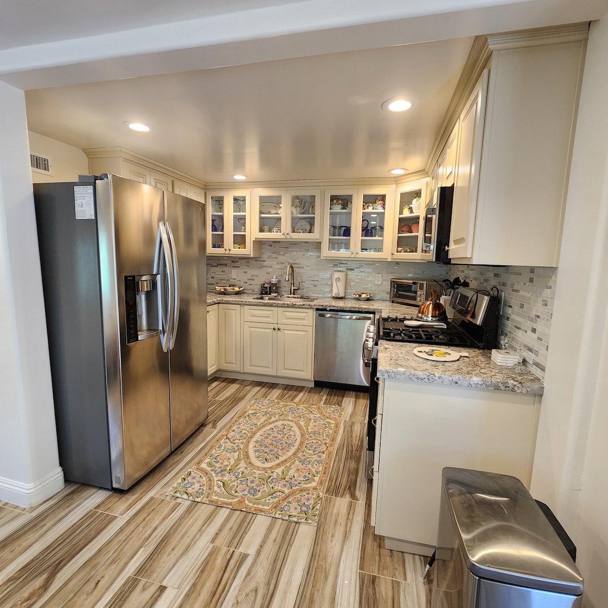 This beautifully remodeled 1914 home is two blocks from Whiskey Row and Downtown Prescott shops, theatres, restaurants, and courthouse square events. Professionally designed inviting home, two bedrooms each with a queen bed, two gorgeous bathrooms each with a full shower and bathtub, and a third private sleeping room with two twin beds. Living room has a grand accent wall, rich furniture, and a warm gas stove for restorative evenings at home. Welcome to Prescott, and welcome to our home.