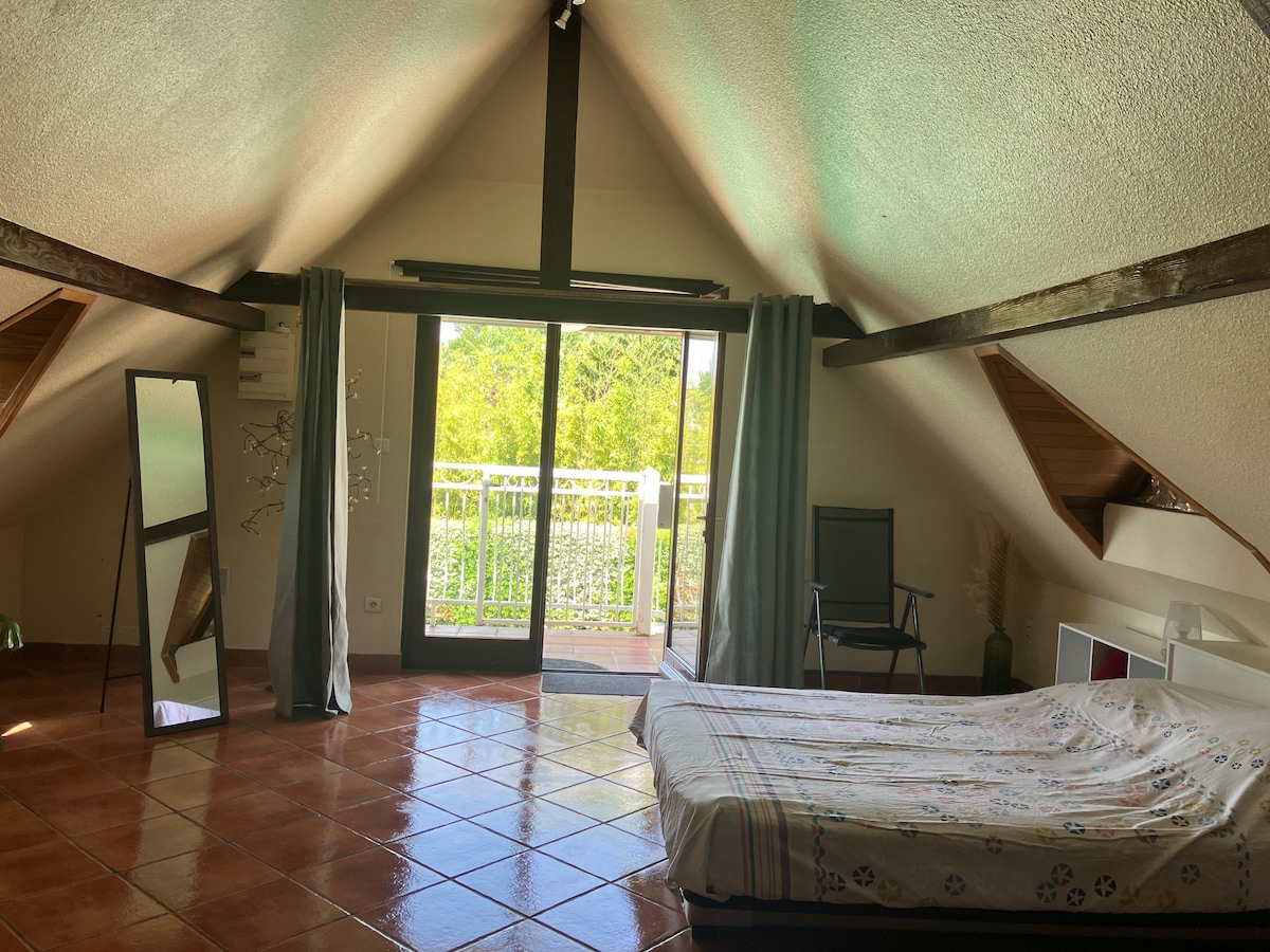 Small 45 m2 independent flat roof house, located on our property. You will find a beautiful living space including a kitchen area, dining room and living room. A separate bedroom (bed 140) and a large bathroom with walk-in shower complete this set. Large 20 m2 terrace overlooking the countryside and hills Starting point for hikes, 3' from a pond. 5 min. from the enedis training center and 30 min. from Lyon Not accessible for people with disabilities