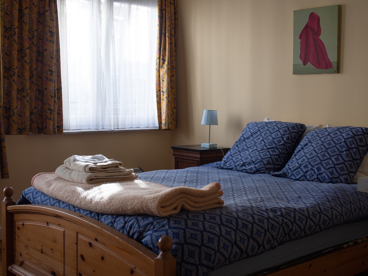 We moved into our new home early 2019 after intensive renovations. As a result, the impressive living room is full of light, with a fully equipped brand new kitchen, no vis-a-vis and a beautiful view on a patio garden full of trees. The bedrooms are comfortable and cosy, the bathroom luxurious. There is a security camera at the entrance of the house and will be disconnected at your arrival.