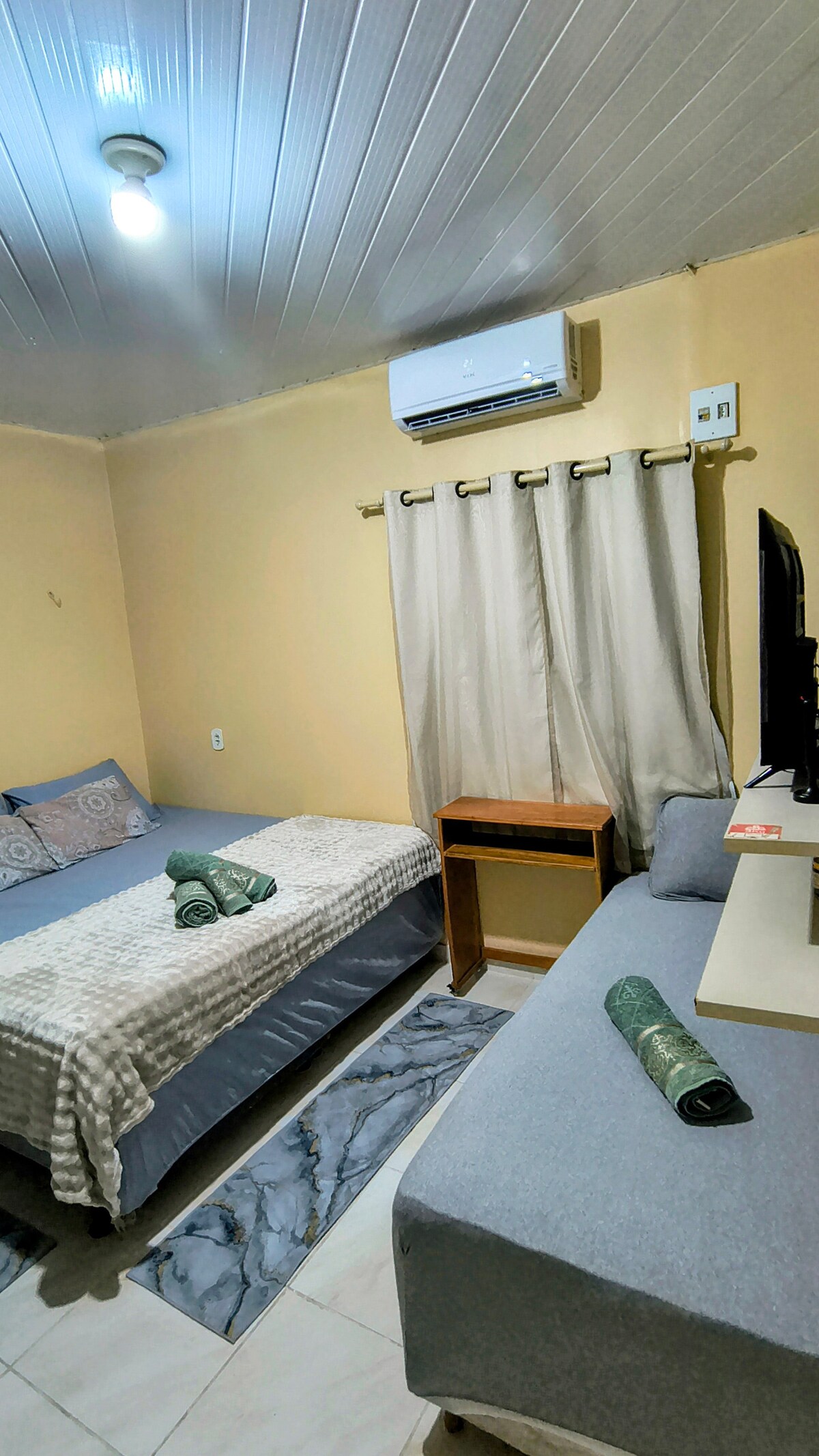 Relax in this unique and quiet place, where you will have for your comfort, TV with prime video, refrigerator, induction stove, coffee maker, air fryer, electric kettle, sofa bed, central air, notebook table, WI FI and electric shower. Located in Bairro Marabaixo I, close to supermarkets, laundries, gyms, pharmacy and restaurant.