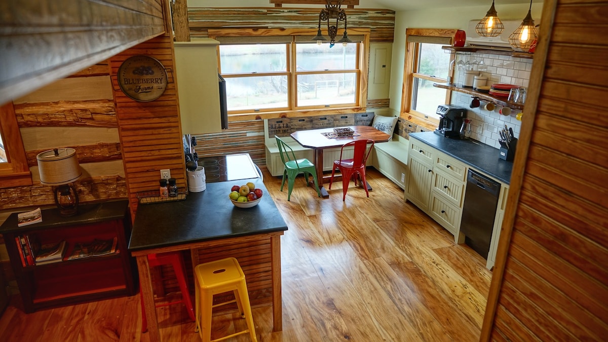Enjoy a peaceful stay in our early 1800’s log cabin. The Cabin sits at the heart of Morris Orchard, a Virginia Century Farm. From the cabin porch, you will look across the pond and enjoy a view of High Peak Mountain, apple orchards, hayfields, and cattle grazing in the pastures. The cabin has been beautifully renovated, preserving the charm and history of the cabin, while adding all the modern amenities you would expect.