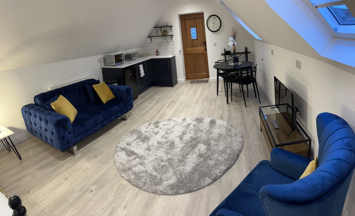 Adjoining historic Heathfield Park, surrounded by woodland & wildlife. This detached, self-contained Annex in the grounds of our home. The space has been transformed into a cosy woodland retreat flooded with natural light. It has a secure private entrance & ample off-street parking. The lounge has a wood burning stove stocked with logs from our garden. The accommodation is ideal for a family of 4 or 2 couples, the bedroom has a kingsize bed and there's a kingsize sofa bed in the lounge.