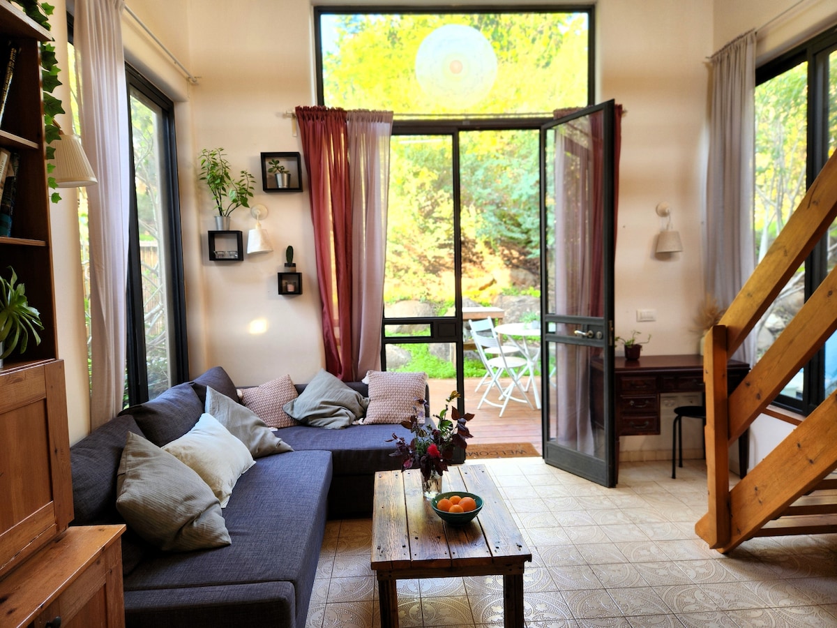 Let's keep it all and simple:) Our adorably unique cabin is located in Amirim, a quiet vegetarian village watching the Galilee from one of it's slopes. It's hidden in the woods and is perfect for the quiet and isolation seekers out there. Girls & guys, All of us should have a chance to slow down, reconnect with our inner voice, tune our vibrations and most importantly, breath. That's what the cabin is here for. It's highly recommended for yogis, artist, writers, thinkers and peace seekers.