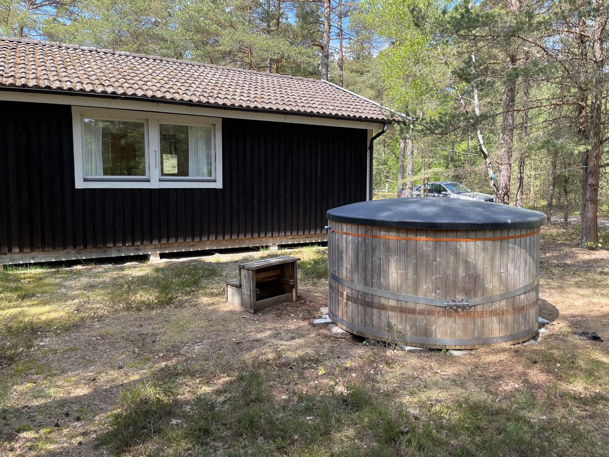 Välkomna till en timmerstuga beläget uppe på en kulle intill Fulltofta Naturreservat. Ni har tillgång till hela tomten som har ett stort trädäck med integrerad badtunna och utsikt över dalen. Stugan har ett sovloft, sovrum, modernt badrum och ett mysigt vardagsrum med en öppen spis för kvällar framför brasan. Elbilsladdstation på parkeringen✅ Rekommenderat för par / familjer. Fester ej tillåtna och det är viktigt att inte hålla hög volym utomhus på kvällarna efter 21.00.