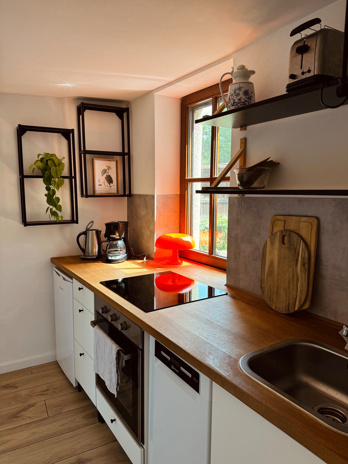 A guest house (approx. 20 square meters) to fall in love with in the old Sinntal forestry commission. (Alternatively 50 sqm/ 3 people: NEW apartment Altes Forstamt Sinntal) High-quality amenities with underfloor heating, pocket spring mattress + loving details, such as indirect lighting, create an absolute feel-good atmosphere Private garden with terrace + grill. Dreamlike views in Rhön + Spessart 1 pet allowed Beautiful spas + ski resorts in the area Top bike path network, e.g. Rhönexpress bike path, R2 Natural swimming pool, hiking, fly fishing