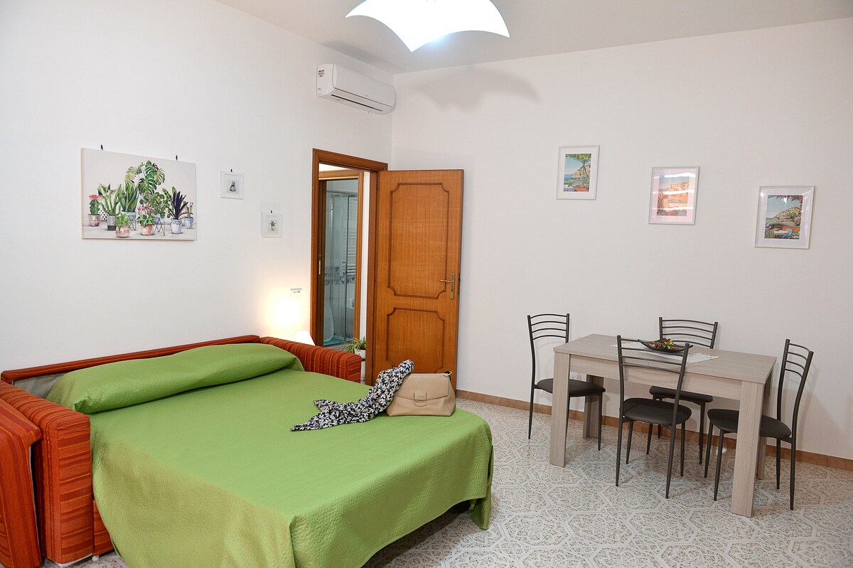 "Acquachiara sweet Home" is located in Maiori on the Amalfi Coast. Located 800 meters from the town of Maiori, panoramic, in the middle of vineyards and lemon groves, overlooking the cove of Salicerchie. Immersed in typical Mediterranean colors and scents, it offers its guests quiet and relaxation. Both from the living room and from the bedroom, the large windows that give access to the balcony offer an incomparable view of the sea.
