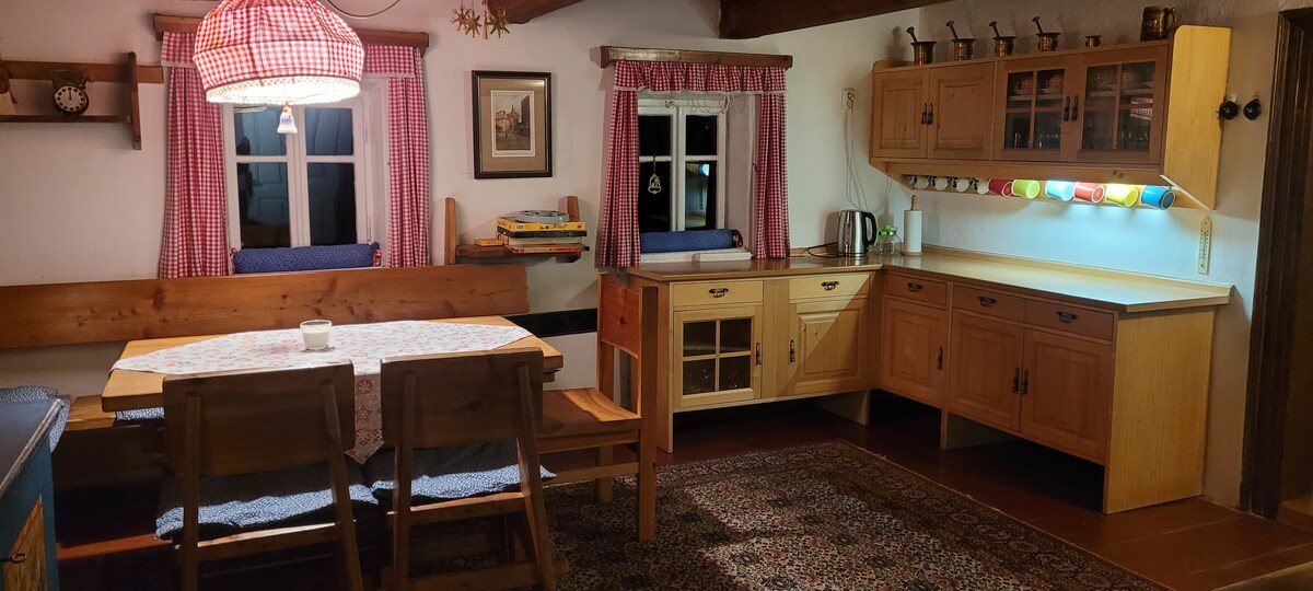 Get to the very end, or maybe the beginning of the road. Next is only the heart of the Karkonosze National Park. Thanks to its location at an altitude of 570 meters above sea level and the layout of the rooms, our house is attractive all year round. We offer a comfortable 1930s-style interior. A hot sauna awaits you in the basement.