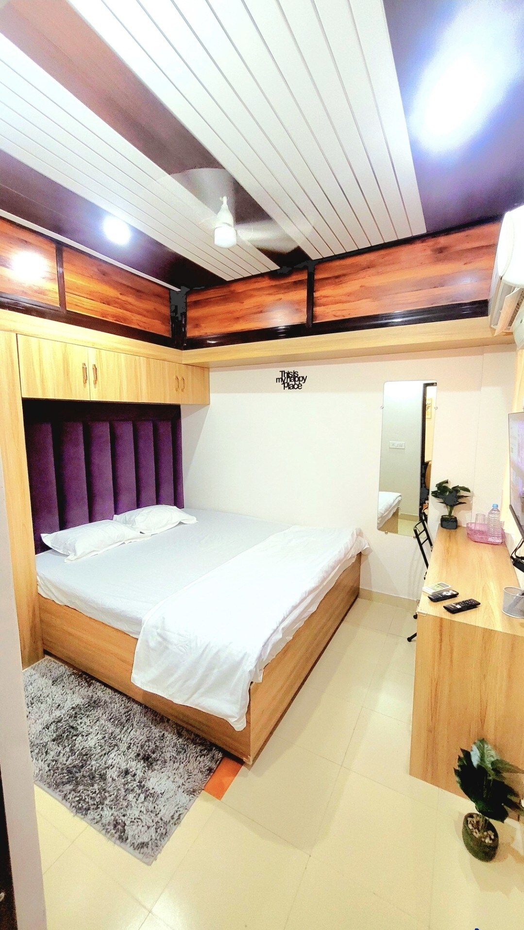 Escape to a completely private, couple-friendly luxury studio in the heart of Gomti Nagar. Designed for uninterrupted peace with seamless self-check-in available, this modern staycation retreat features your very own Private Home Cinema (6ft HD screen with Bluetooth speakers ) and a unique floating light-up bed for ultimate relaxation. Perfectly located just 5 minutes from Patrakarpuram Market and 10 minutes from the all good restaurants and shopping hubs in Gomti Nagar.