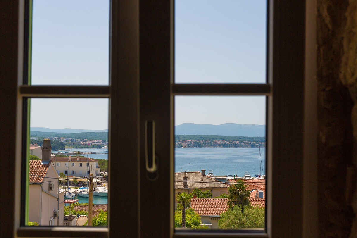 Our house is situated in the very centre of Malinska, hidden from the street, which gives you the privacy. You can park your car free of charge in the frontyard. A big terrace has the sea view. The apartment is only 2 or 3 minutes walk away from the beaches, shops, supermarket and restaurants. If you want to try yourself as a grill master, you have a grill in the backyard, with benches so you can eat outside. If you come with your bycicles, you can store them in our ground floor storage.