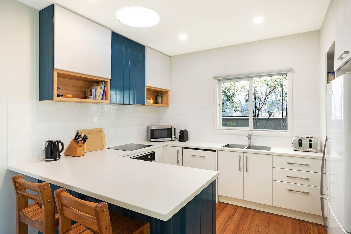 Delightful 3 bedroom 1890 cottage in Bega. Tastefully renovated with all modern facilities, excellent kitchen, large fenced garden and walking distance to cafes, shops and town centre. Comfortably sleeps 5, but can sleep 6. Wood burning stove for the cooler months. Pet friendly. There are steps from the driveway and at front path so reasonable is mobility required. Please note there is no wifi but phone reception is generally good.